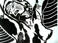 "Frowning betrayal" Holzschnitt auf Bütte, 1981