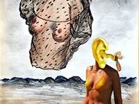 "Sirene - Diptychon" 2021, Monotypie Assemblage auf Holz, rechter Flügel 60 cm x 80 cm