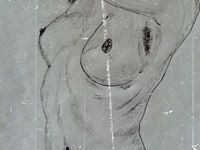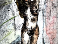 "Ancient nude" (Holzschnitt auf Graffito) auf Leinwand, 50 cm x 70 cm, 2016