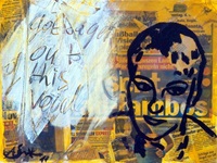 "Loud out - GOTTA GET" 2011, Acryl, Assemblage Mischtechnik auf Leinwand,40 cm x 32 cm