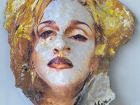 "56 - Madonna" (Holzschnitt auf Graffito) auf Leinwand, 70 cm x 50 cm, 2016