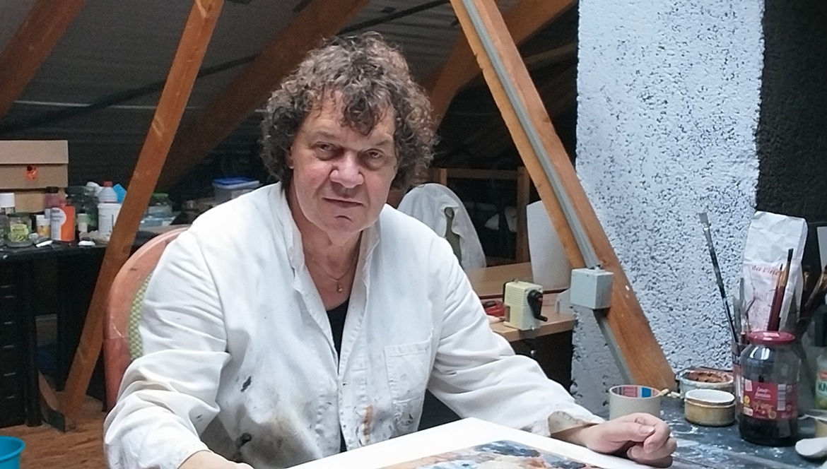 "Urban icon painting (Holzschnitt auf Graffito) auf Leinwand, 50 cm x 70 cm, 2016